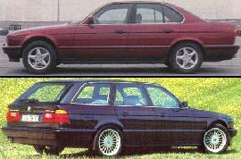 BMW 5er (E34) 2.1988 начало выпуска моделей 520i, 525i, 530i, 535i. 3.1988 турбодизель 524td(6 cyl.) 9.1988 Модификация М5(S38B36). 5.1990 Двигатели 2,0л и 2,5л получили четыре клапана на цилиндр(М50). 10.1991 525iX(полный привод) и 525tds(турбодизель с промежуточным охлаждением). 5.1992 М5 с двигателем 3,8/340 л.с. (S38B38) вместо 3,6/315л.с. 10.1992 появляются 530i и 540i c V8 (впервые после 50-х годов) 1.1993 новый двигатель 1,8л/115 л.с.(единственный 4-х цил. Мотор в этой серии). 4.1993 дизель 2,5л (525td). 11.1995 начало выпуска седанов Е39, универсалы ушли позже 1997 году. |